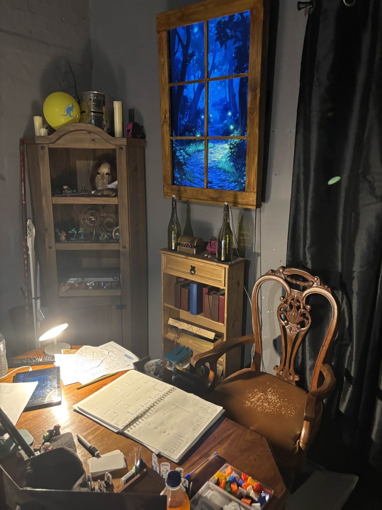 Before reaching Southark, Purr the Tabaxi Warlock was visited in his dreams. A shadowy vision of Neko and the Shadow Cats called to him, urging him to seek out the Heart of the Margreve and drink its wild magic. Purr shared this with the group — an ominous start to the journey ahead. This was lots of fun, creepy music up loud. I turned to focus on the player. I’ve been waiting to get started on the Warlocks journey.